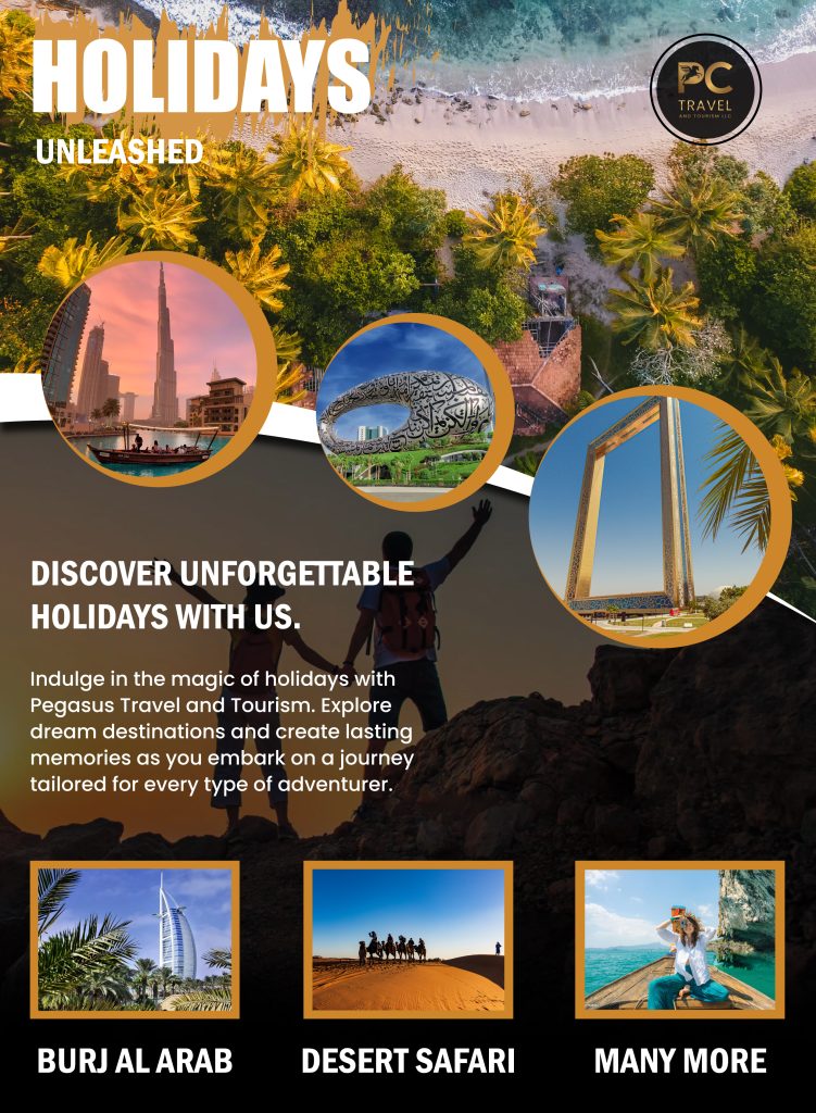 At Pcs Travel and Tourism, we invite you to explore the world in style with our meticulously crafted holiday packages. Immerse yourself in the enchanting tapestry of diverse cultures, breathtaking landscapes, and unparalleled experiences. Our curated packages offer a seamless blend of adventure, relaxation, and cultural discovery. From captivating city breaks to idyllic beach retreats, each itinerary is designed to cater to the discerning traveler. Let us be your guide to extraordinary moments and unforgettable destinations. Choose Pcs Travel and Tourism for a travel experience that goes beyond the ordinary, creating memories that last a lifetime.
