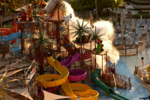 Thrill-seekers can experience adrenaline-pumping rides, including the awe-inspiring Tantrum Alley and Burj Surj. The Wipeout and Riptide Flowriders provide the ultimate surfing adventure. The Wipeout Flowrider, one of only four in the world, designed by the inventive American lawyer and surf enthusiast Thomas Lochtefeld, delivers an exhilarating experience by propelling over seven tonnes of water per second across a molded foam structure, creating a lifelike wave effect perfect for body-boarding and knee-boarding (or stand-up flowboarding during private events).